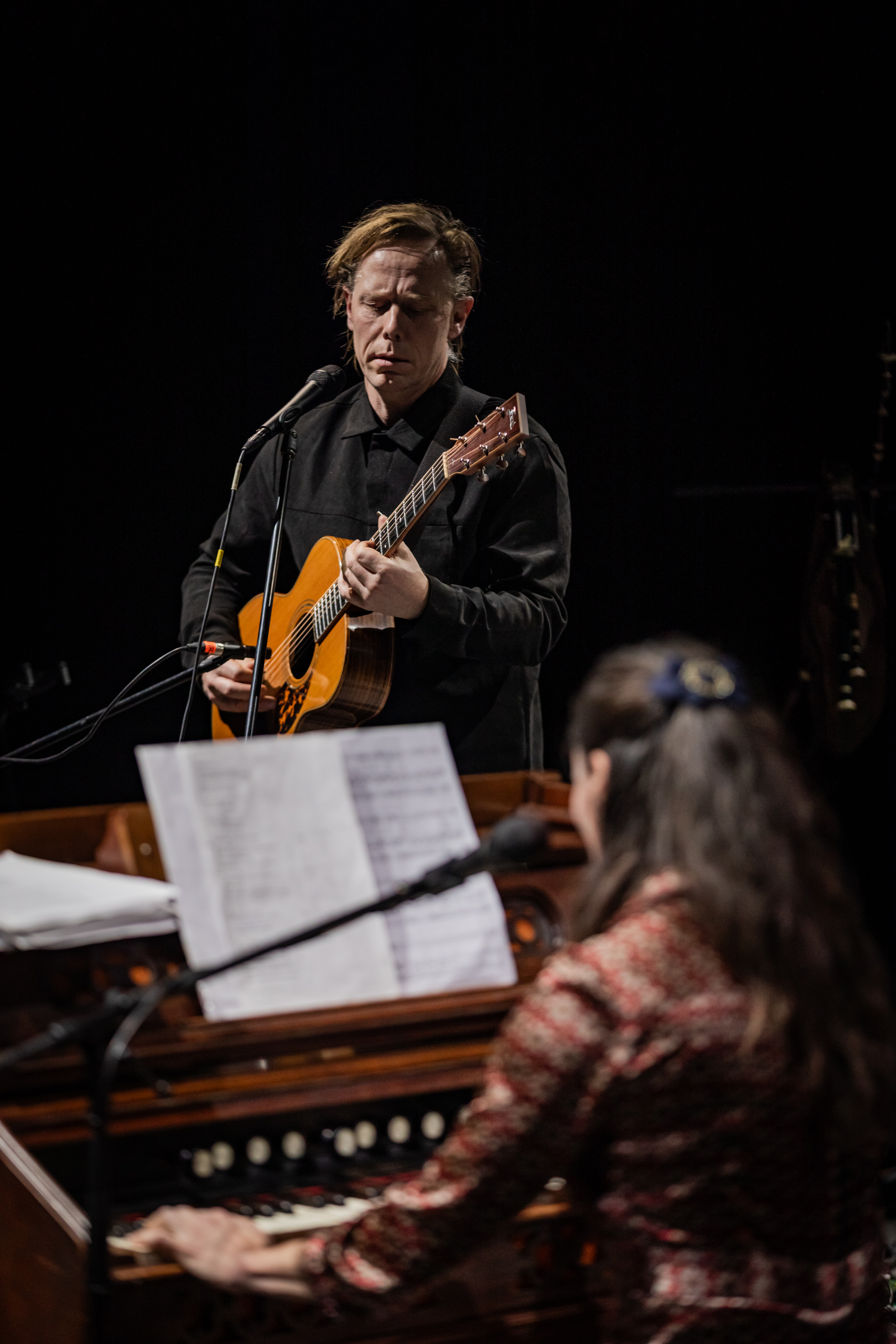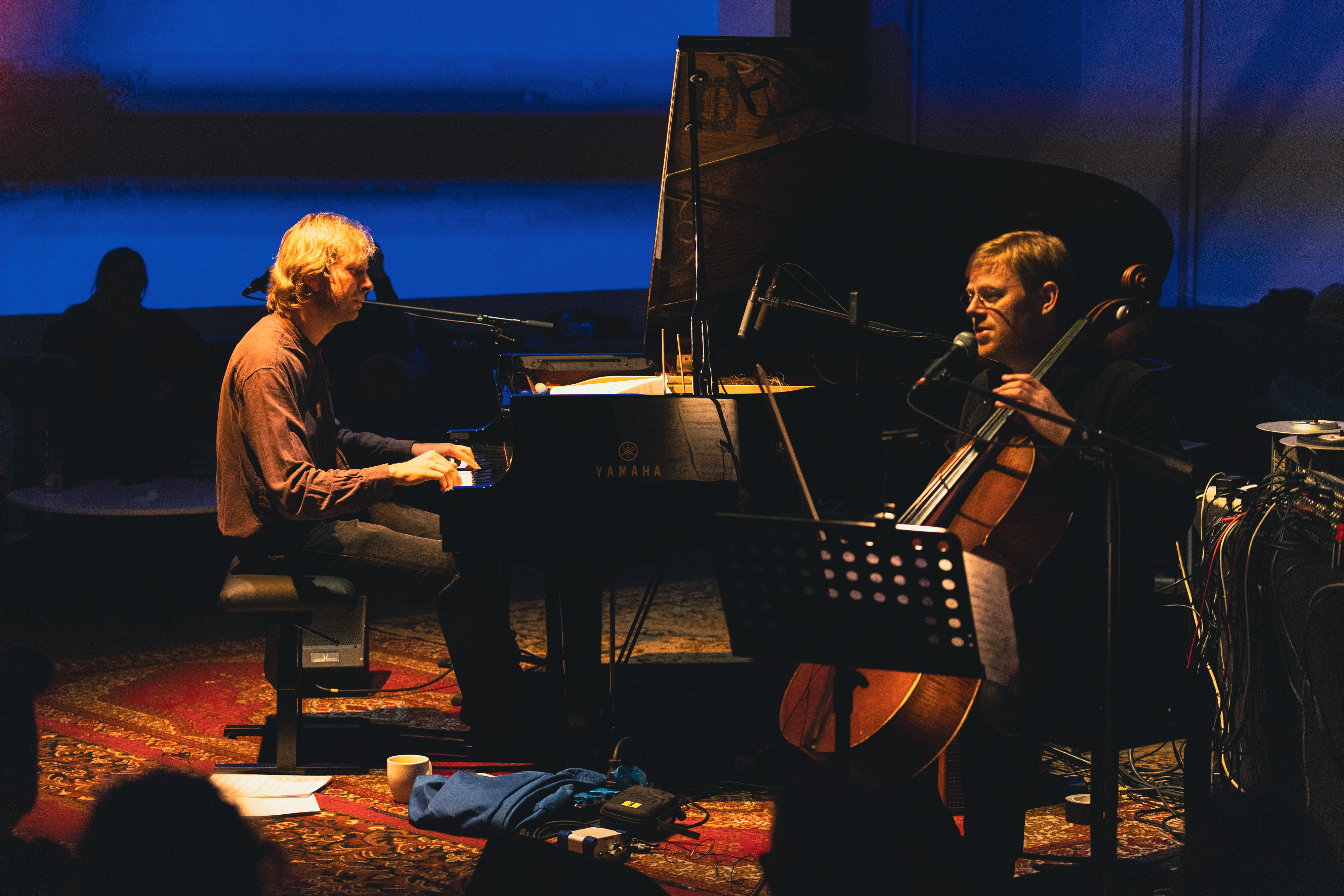 Balsamem dla zmysłów okazał się koncert duetu Jakob Kullberg i Matt Choboter. W krótkiej, lirycznej podróży wprowadzili publiczność w spokój, prostotą i klarownością kontrastując z poprzednimi, intensywnymi doświadczeniami festiwalu. Kullberg, niczym palimpsest, tkał sieć połączeń w warstwie muzycznej i tekstowej, przetwarzając klasyków, od Clary Schumann, w nową, subtelną narrację dźwiękową. Przez Skriabina, po Brahmsa – nadawał klasycznym kompozycjom nowy kontekst. W warstwie słownej pozostawiał jedynie ślady inspiracji, sięgając do Ezry Pounda i poezji braci Gizzich, dla których pisanie było sposobem radzenia sobie ze stratą po tragicznym wypadku ojca. W rękach artysty te tropy stawały się punktem wyjścia do własnej, współczesnej narracji.