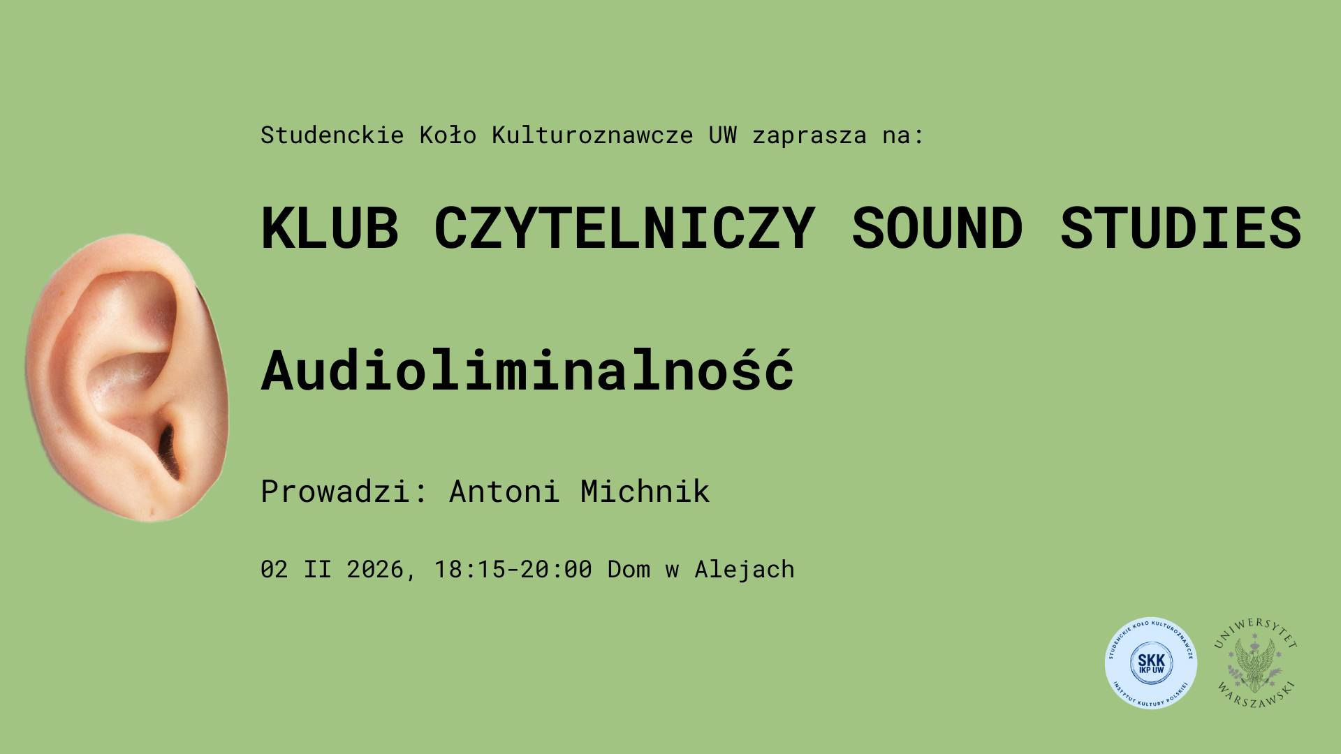 Klubu Czytelniczy Sound Studies – przestrzeń dla osób zainteresowanych kulturowymi, społecznymi, filozoficznymi, ekologicznymi i technologicznymi aspektami dźwięku. Na naszych spotkaniach analizujemy, jak dźwięk wpływa na codzienne życie, tożsamość, historię i doświadczenia wspólnotowe.