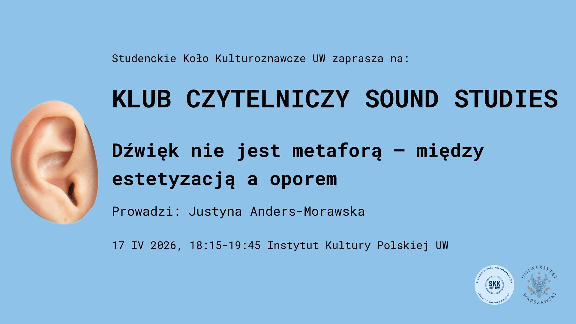 Klubu Czytelniczy Sound Studies – przestrzeń dla osób zainteresowanych kulturowymi, społecznymi, filozoficznymi, ekologicznymi i technologicznymi aspektami dźwięku. Na naszych spotkaniach analizujemy, jak dźwięk wpływa na codzienne życie, tożsamość, historię i doświadczenia wspólnotowe.